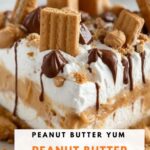 - Add Final Toppings: Gently layer the remaining 2 cups whipped topping on top, then sprinkle with peanut butter chips and chopped reserved cookies. Drizzle melted peanut butter over the top for extra flavor and decoration.
