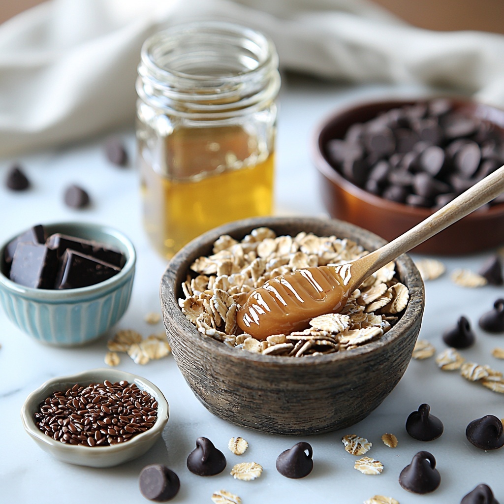 - Mix Ingredients: In a medium bowl, combine the rolled oats, peanut butter, honey, chocolate chips, ground flaxseed, and vanilla extract. Stir well until all ingredients are thoroughly mixed and form a sticky dough.