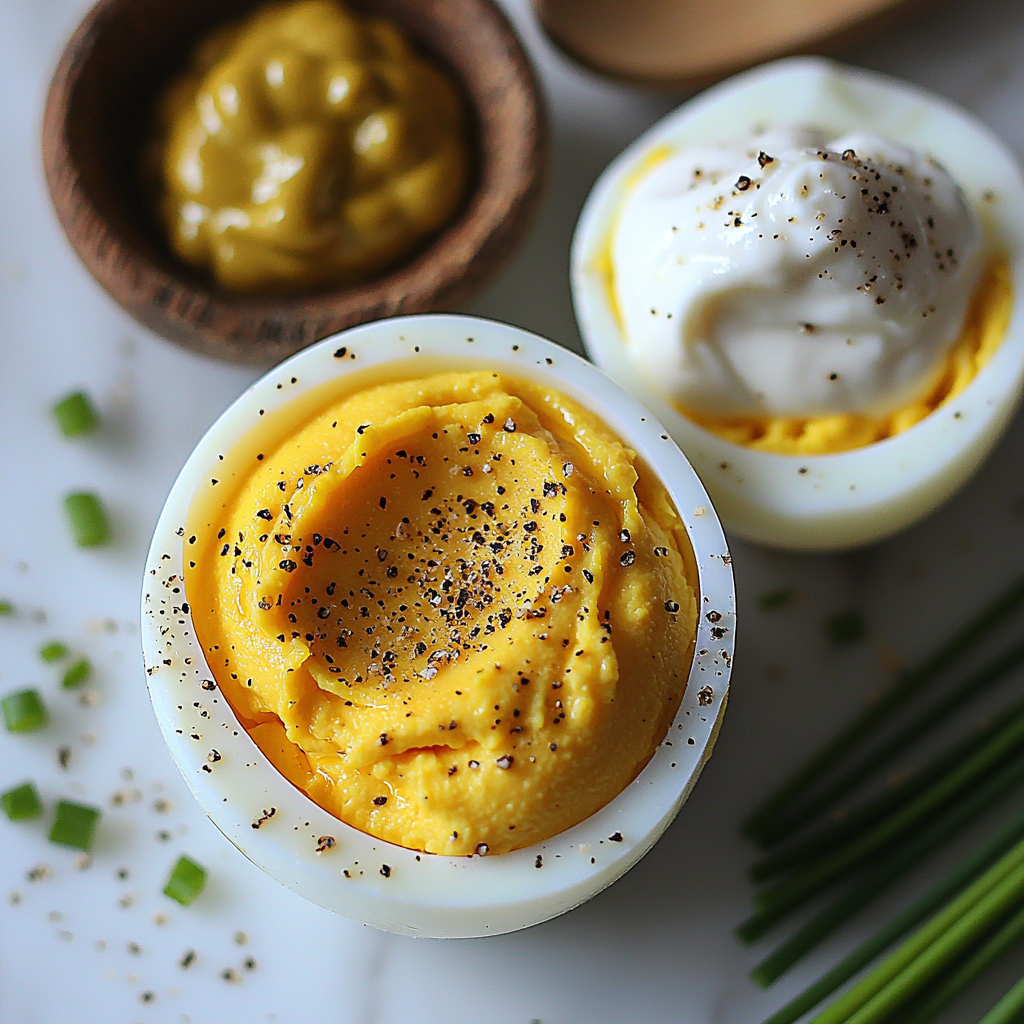 Absolutely! You can prepare the yolk filling up to a day in advance and refrigerate it in an airtight container. Pipe or spoon it into the egg whites just before serving to keep the presentation fresh and beautiful.