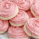 - Frost Cookies: Once the cookies are fully cooled, pipe the pink lemon frosting onto each cookie in a swirl pattern using a piping bag or a spoon for a decorative finish.