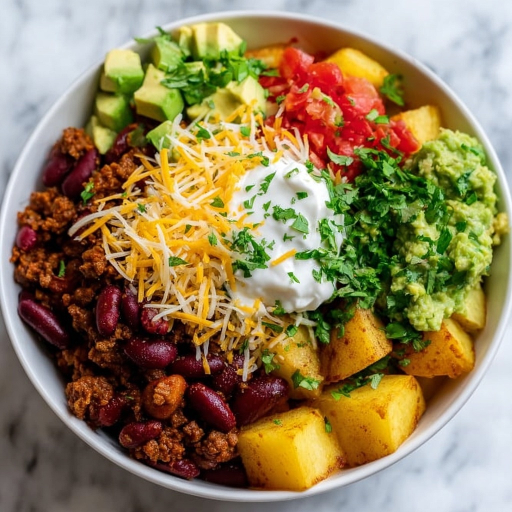Serve the Potato Taco Bowl Recipe in shallow bowls or large plates to showcase all the colorful layers. For a fun twist, turn it into a layered casserole in a baking dish topped with cheese and baked until bubbly, then scoop out servings family-style. You can also serve it deconstructed alongside taco shells for those who love to customize while keeping all the best flavors handily close.