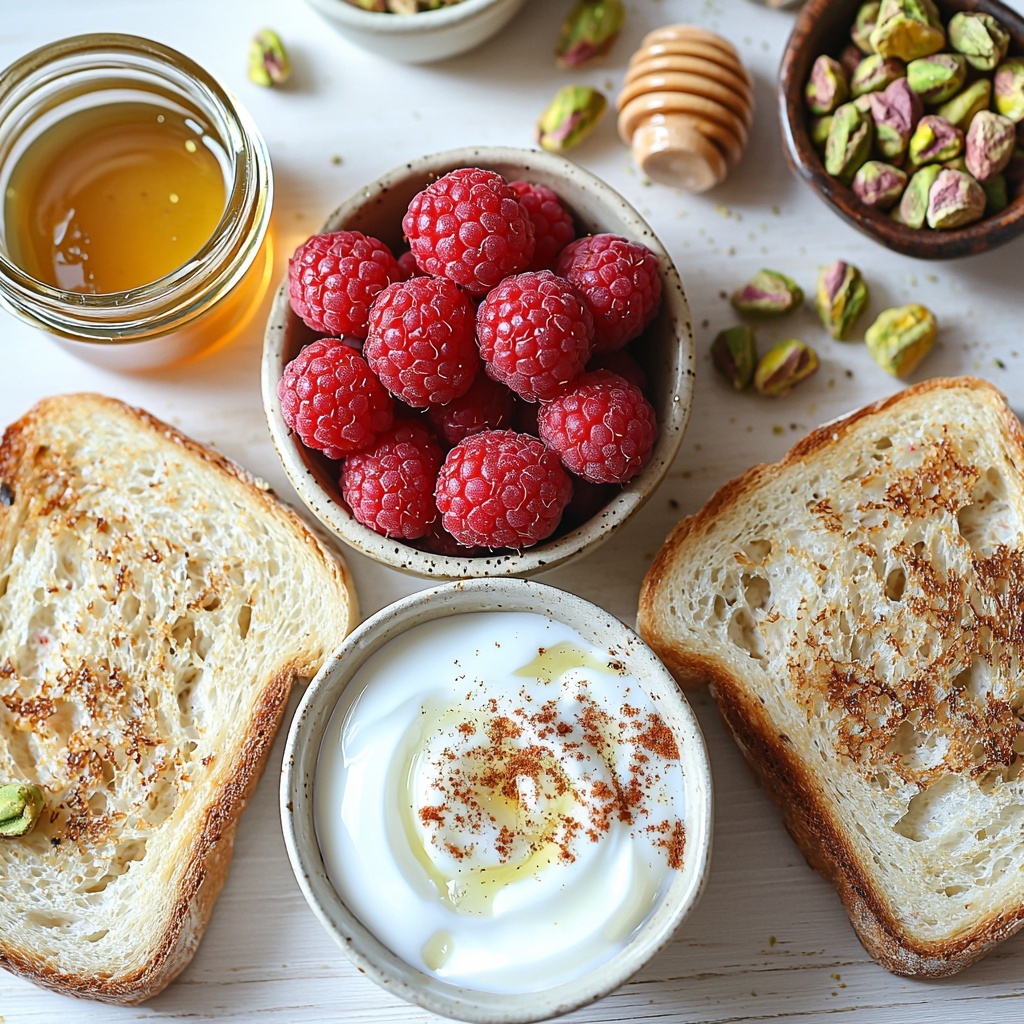 This Raspberry Yogurt Toast with Pistachios Recipe relies on simple, fresh ingredients that come together effortlessly yet make a huge impact. Each element plays a vital role, whether it’s providing the creamy base, a burst of sweet fruit, or a bit of crunch to contrast the softness — plus a touch of natural sweetness that ties everything together beautifully.