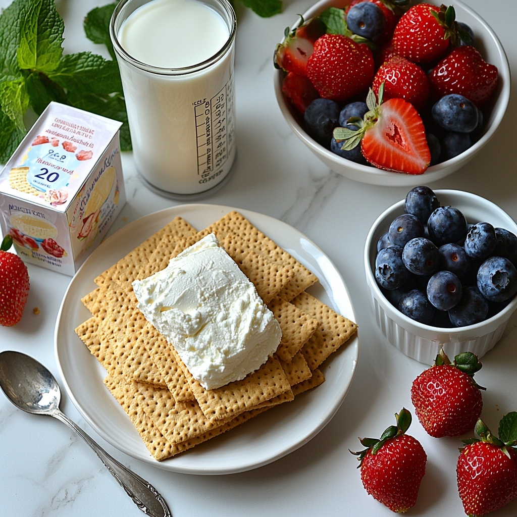 The magic of the Red White Blue Icebox Cake Recipe lies in its simple yet deliberate ingredients. Each one plays an essential role: from the sturdy graham crackers providing structure, to the rich cream cheese and pudding blend delivering that luscious creaminess, and finally, the fresh berries offering juicy bursts of color and flavor.