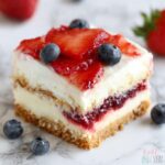 This Red White Blue Icebox Cake is a refreshing no-bake dessert featuring layers of graham crackers, creamy vanilla pudding mixed with cream cheese and whipped topping, and topped with fresh strawberries and blueberries. Perfectly chilled and easy to prepare, it’s an ideal patriotic dessert for summer gatherings or any celebration.