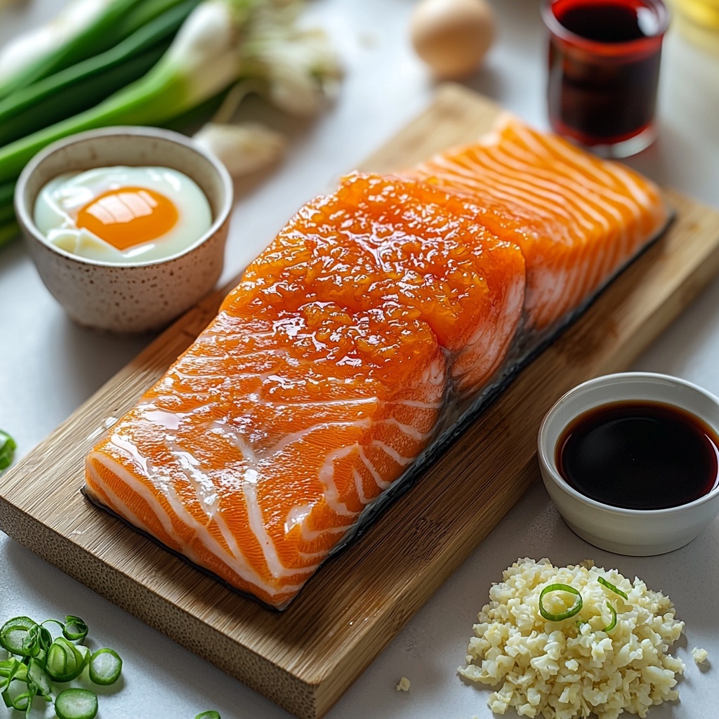 Simple yet essential, the ingredients in this Salmon Fried Rice Recipe are thoughtfully chosen to create that perfect balance of taste, texture, and aroma. Each component plays a vital role—from the flaky salmon adding richness and protein, to the sesame oil infusing a subtle nutty depth, and the scallions bringing freshness and a little zing.