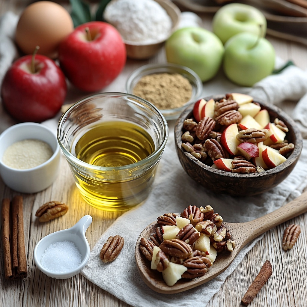 This Southern Apple Cake Recipe calls for simple, everyday ingredients that come together beautifully to create a dessert bursting with texture and flavor. Each item has a special role, from the richness of vegetable oil to the spicy sweetness of cinnamon, ensuring every bite is both tender and flavorful.