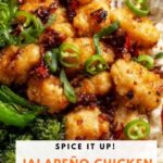 A spicy and flavorful Jalapeño Chicken recipe featuring tender chicken strips sautéed with garlic, red bell pepper, and jalapeños, served over fluffy white rice. This quick and easy dish offers a perfect balance of heat and sweetness with a gluten-free soy sauce twist, ideal for a tasty weeknight dinner.