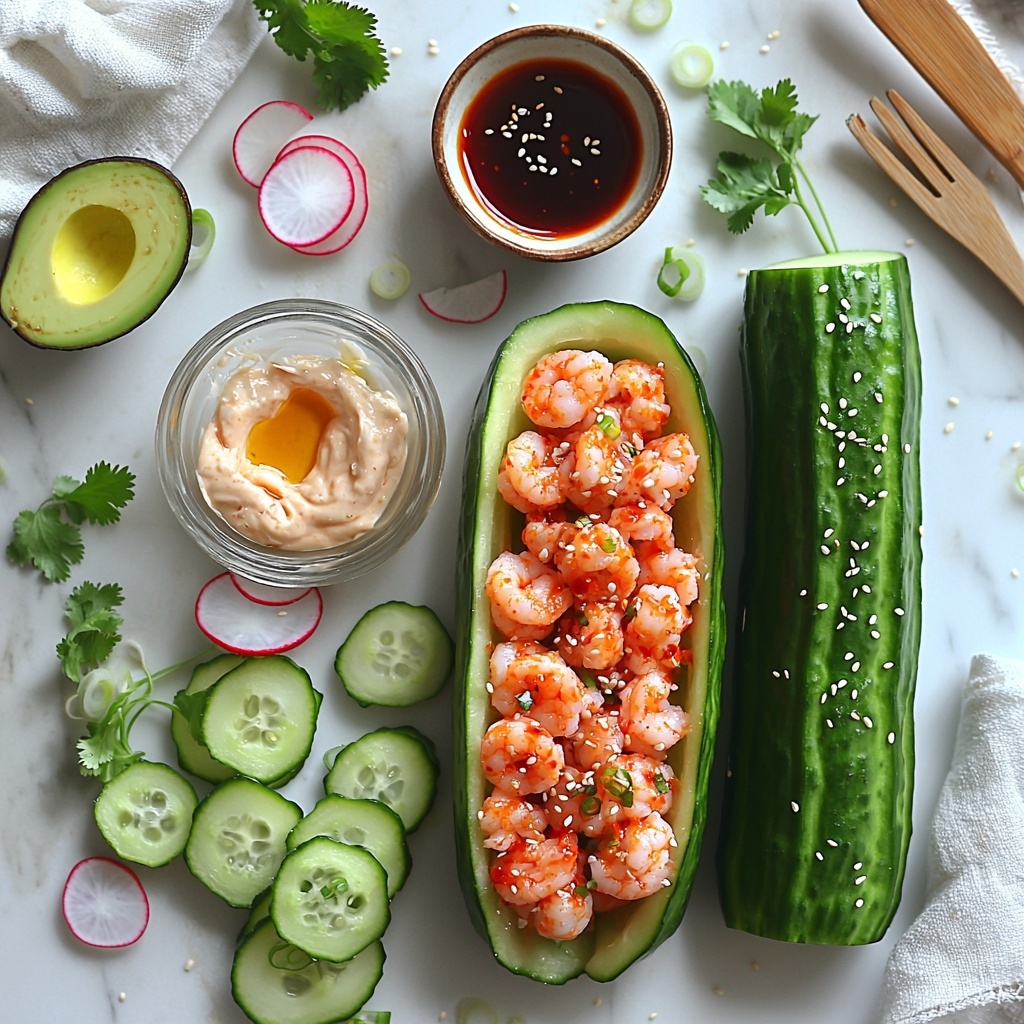 Gathering the right ingredients for the Spicy Shrimp Cucumber Sushi Boats Recipe is wonderfully straightforward, and each component plays a crucial role. From the juicy cucumbers that serve as crisp vessels to the creamy, spicy shrimp filling, every element adds color, texture, and a burst of complementary flavors.