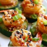 Spicy Shrimp Cucumber Sushi Boats are a fresh and healthy appetizer or light meal featuring crisp cucumbers filled with a creamy, spicy shrimp mixture. This easy no-cook recipe combines cooked shrimp with mayonnaise, sriracha, sesame oil, and green onions, topped with crunchy sesame seeds and optional garnishes like avocado and radish slices—perfect for a quick, refreshing, and flavorful dish.