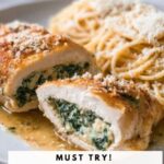 This recipe freezes well if you want to save portions for later. Wrap each stuffed chicken breast tightly in plastic wrap and place them in a freezer-safe bag. They will stay good for up to 2 months and thaw overnight in the fridge before reheating.