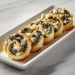 These Spinach Feta Pinwheels are a delicious, flaky appetizer featuring a buttery puff pastry filled with a savory blend of spinach, feta, mozzarella, and aromatic seasonings. Perfect for parties, snacks, or a light bite, these pinwheels offer a harmonious mix of creamy cheese and nutritious greens wrapped in a golden, crispy crust.