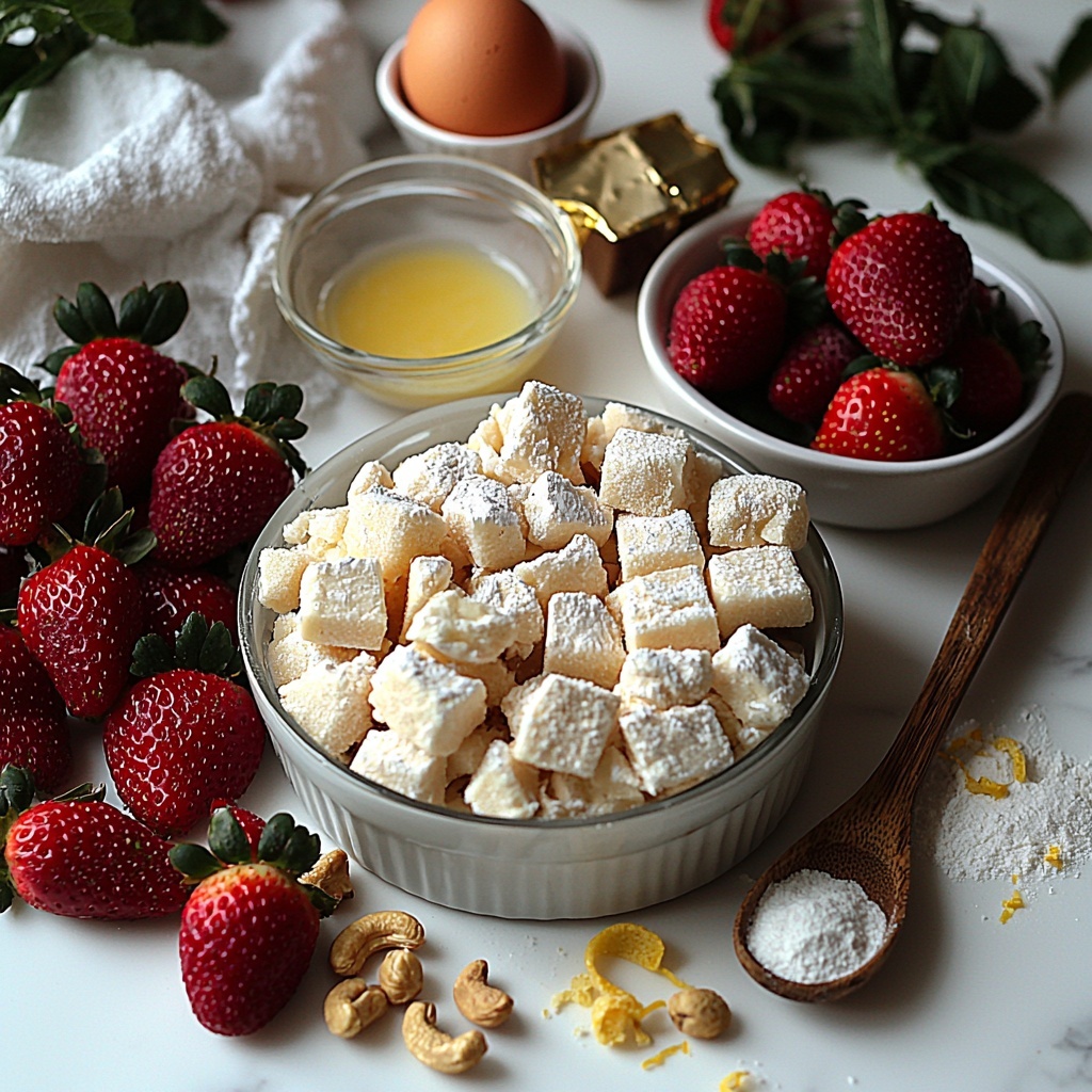 - Macerate Strawberries: In a bowl, combine halved strawberries with granulated sugar, lemon zest, rose water (if using), and cardamom powder (if using). Let the mixture sit for 30 minutes to 1 hour at room temperature to release the juices and intensify flavor.