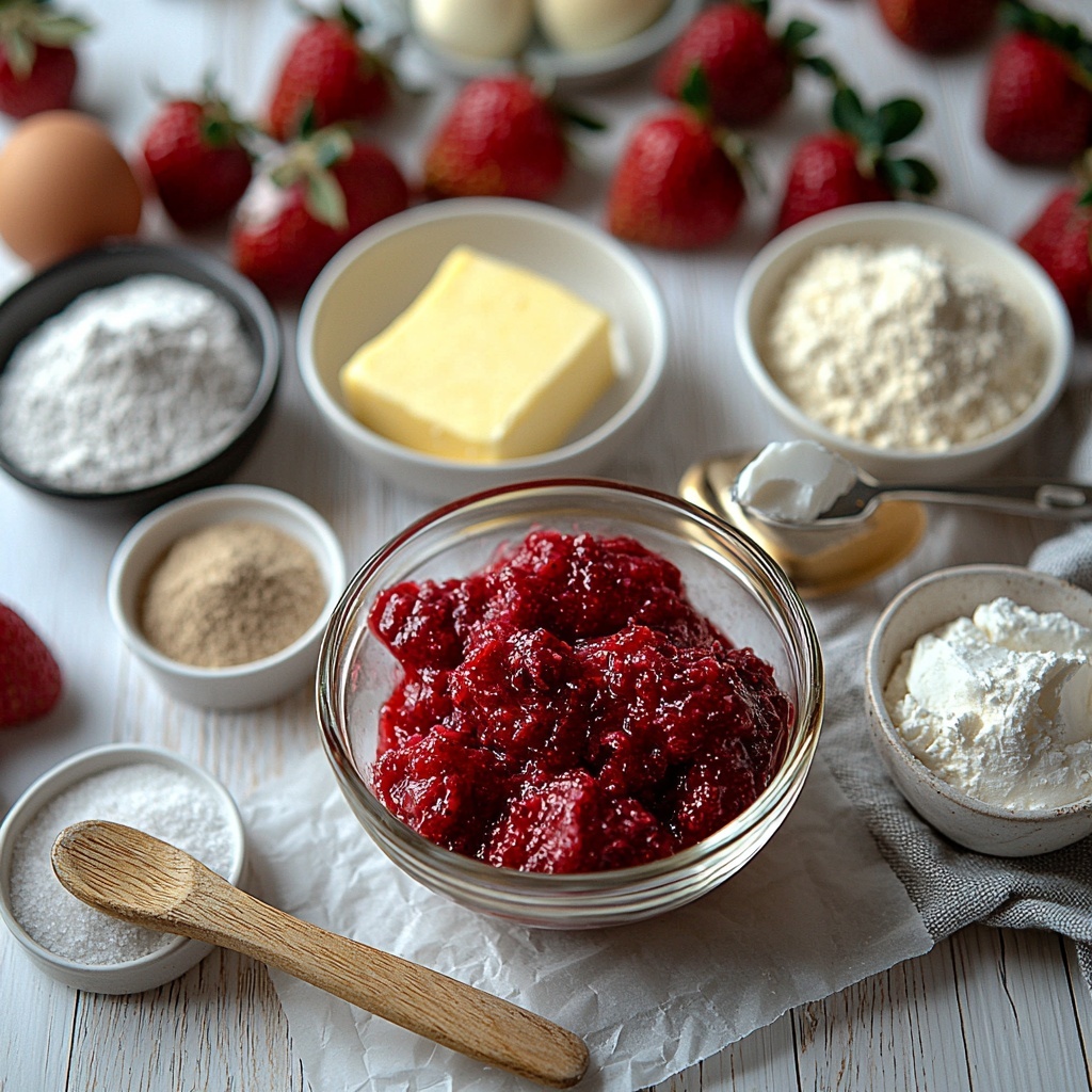 Getting the perfect balance of texture and taste starts with simple, high-quality ingredients. Each item here plays a key role in making these cookie cups irresistibly tender, creamy, and full of fresh strawberry goodness.