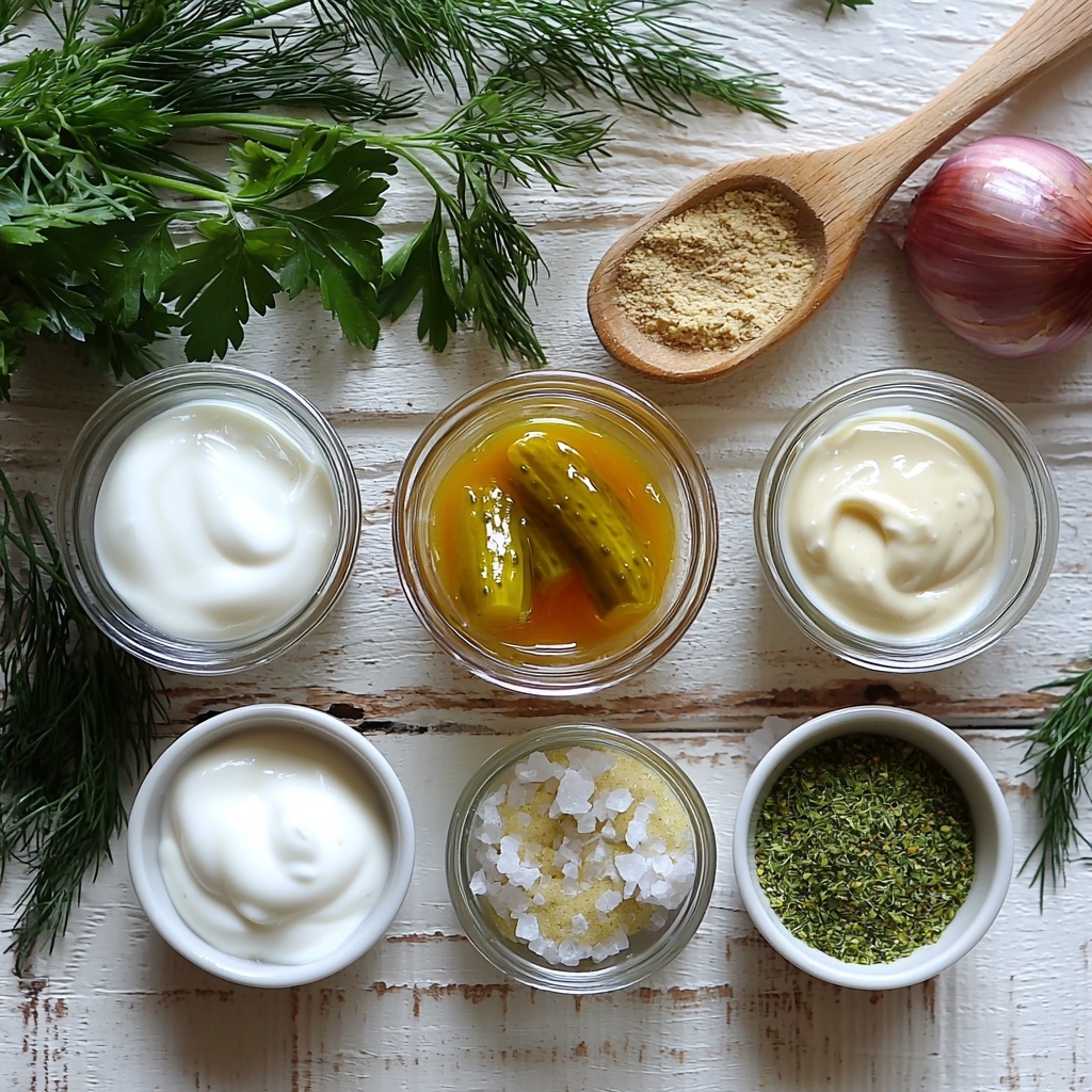 Getting this dressing right is all about balancing familiar ingredients that work in harmony to create a creamy, tangy burst of flavor. Each component plays a vital role, from the richness of mayo and sour cream to the herbal lift from dill and parsley, and of course, that magical splash of pickle juice.