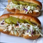 These White BBQ Chicken Subs are a delicious and easy-to-make sandwich perfect for a quick lunch or dinner. Tender shredded chicken mixed with tangy white BBQ sauce is piled high on freshly baked sub rolls, then topped with crisp coleslaw, zesty pickles, and onions for the perfect balance of flavors and textures. Baked until warm, these subs make a flavorful and satisfying meal for the whole family.