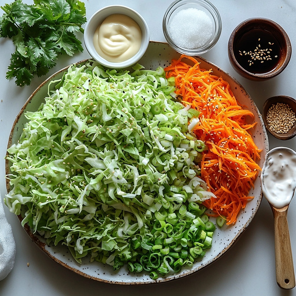 These ingredients are refreshingly simple yet thoughtfully chosen to build layers of flavor, texture, and color. Each component, from the crunchy cabbage to the toasted sesame oil, plays a crucial role in creating this irresistible slaw.